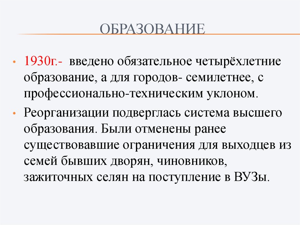 ОБРАЗОВАНИЕ1930г.- введено обязательное четырёхлетние