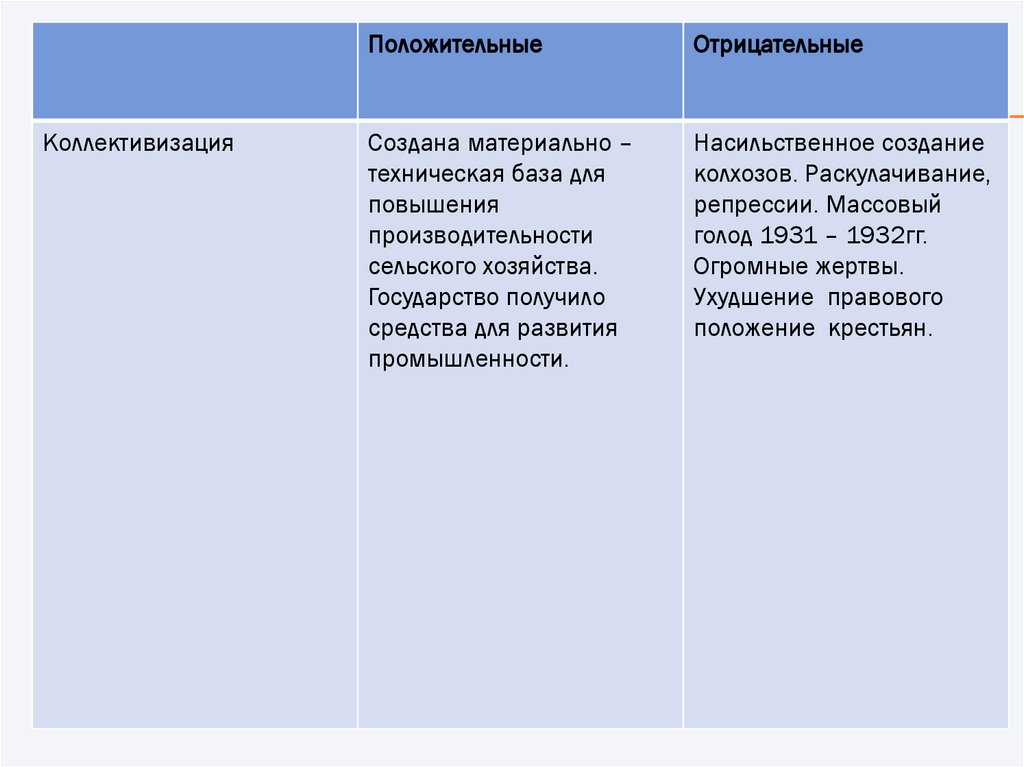 КоллективизацияПоложительные