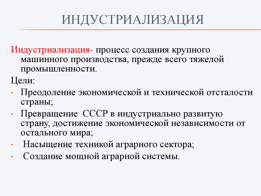 • Осуществление индустриализации за счет