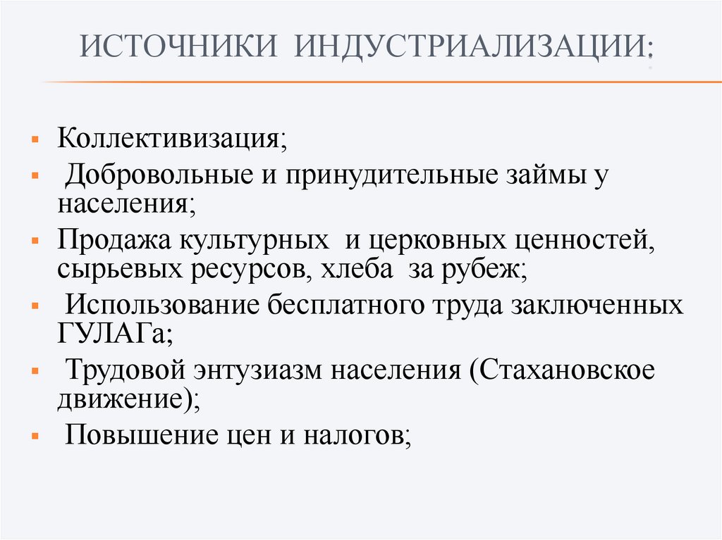 ИСТОЧНИКИ ИНДУСТРИАЛИЗАЦИИ:Коллективизация;