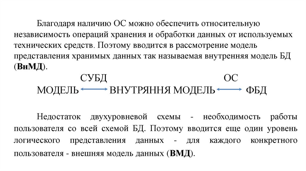 Благодаря наличию ОС можно обеспечить относительнуюнезависимость операций хранения и обработки данных от используемых