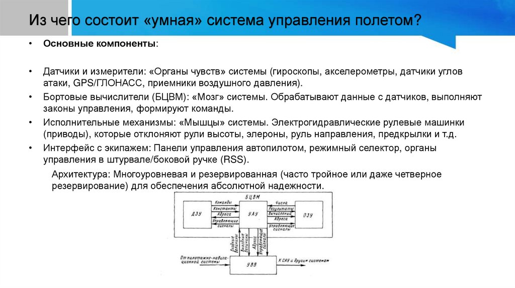 Из чего состоит «умная» система управления полетом?Основные компоненты: