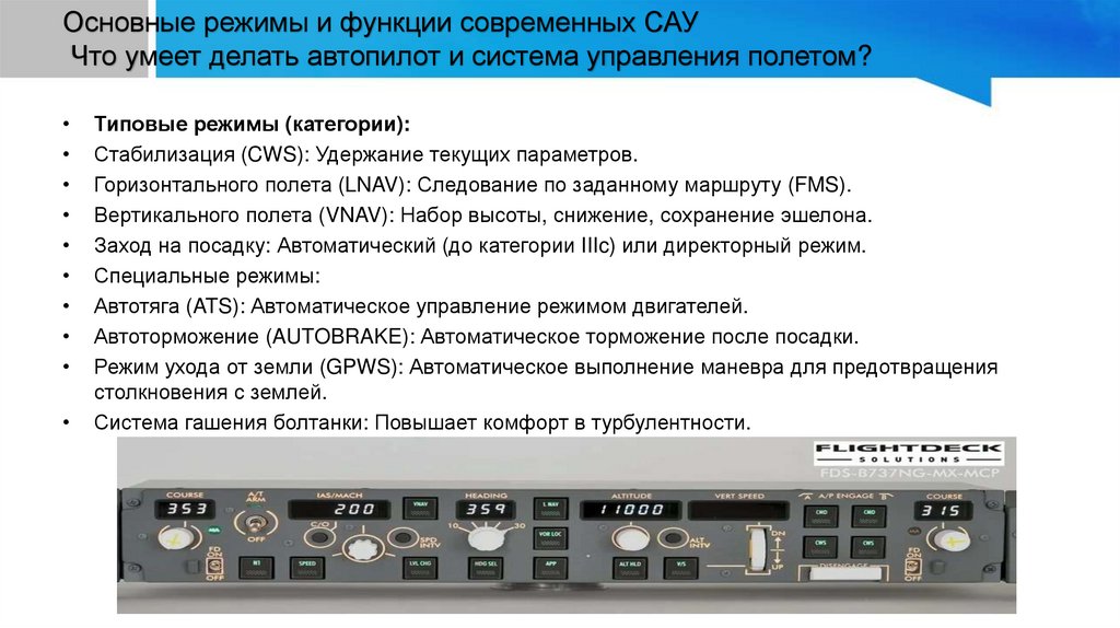 Основные режимы и функции современных САУЧто умеет делать автопилот и система управления полетом?
