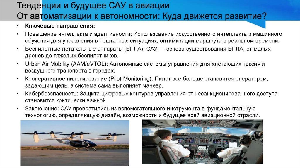 Тенденции и будущее САУ в авиацииОт автоматизации к автономности: Куда движется развитие?