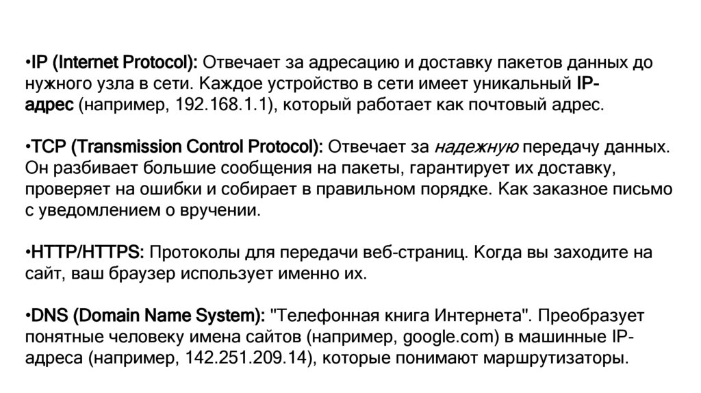 •HTTP/HTTPS: Протоколы для передачи веб-страниц. Когда вы заходите на