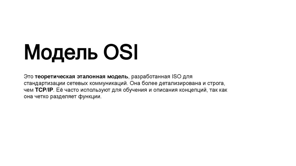 чем TCP/IP. Её часто используют для обучения и описания концепций, так как