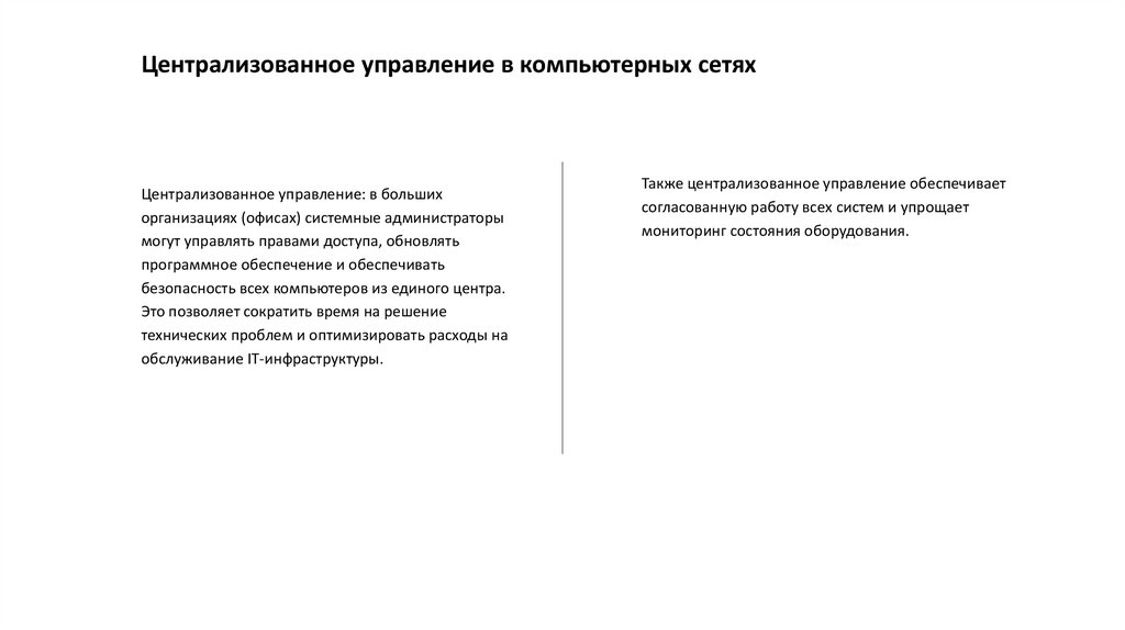 Централизованное управление в компьютерных сетяхЦентрализованное управление: в больших
