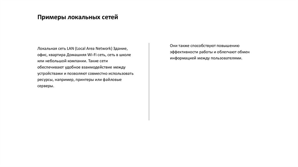 Примеры локальных сетейЛокальная сеть LAN (Local Area Network) Здание,