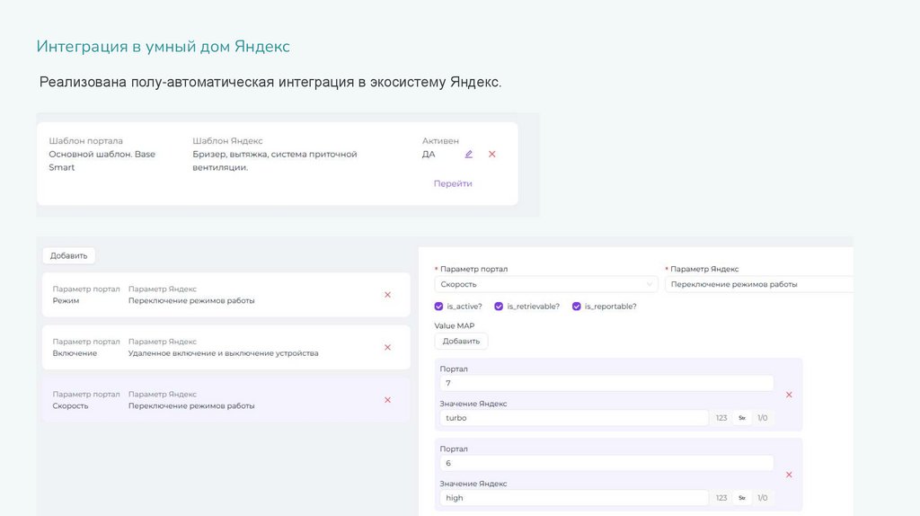 Интеграция в умный дом ЯндексРеализована полу-автоматическая интеграция в экосистему Яндекс.