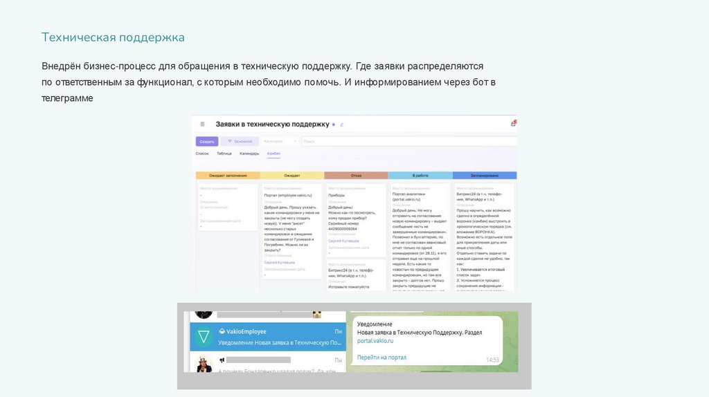 Техническая поддержкаВнедрён бизнес-процесс для обращения в техническую поддержку. Где заявки распределяются