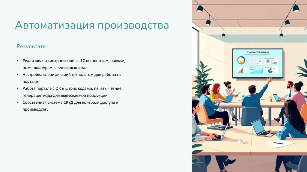 Внедрить автоматическое планирование в систему, доработать систему контроля производимой продукции. Оборудовать рабочие места и обучить сотрудников