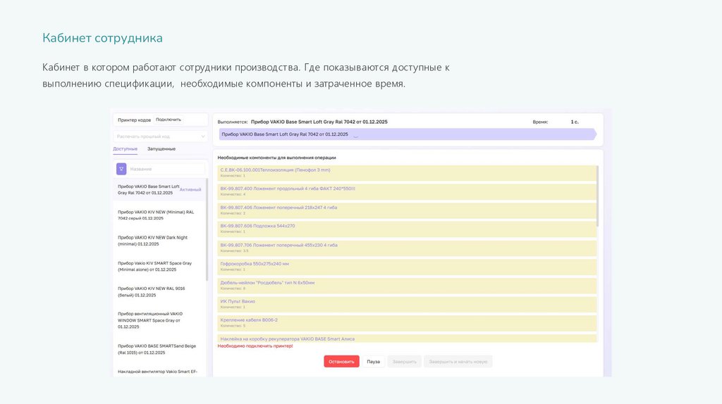 Кабинет сотрудникаКабинет в котором работают сотрудники производства. Где показываются доступные к