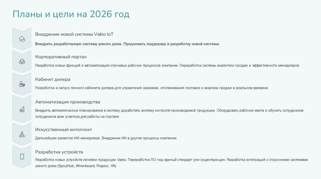 Планы и цели на 2026 годВнедрение новой системы Vakio IoT