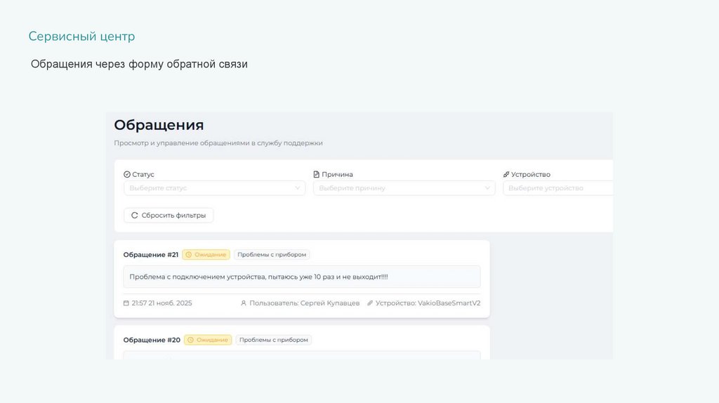 Сервисный центрРеализован ф ункционал для обработки запросов пользователей,