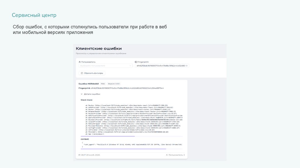Сервисный центрСбор ошибок, с которыми столкнулись пользователи при работе в веб