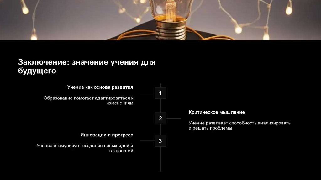 Заключение: значение учения длябудущего