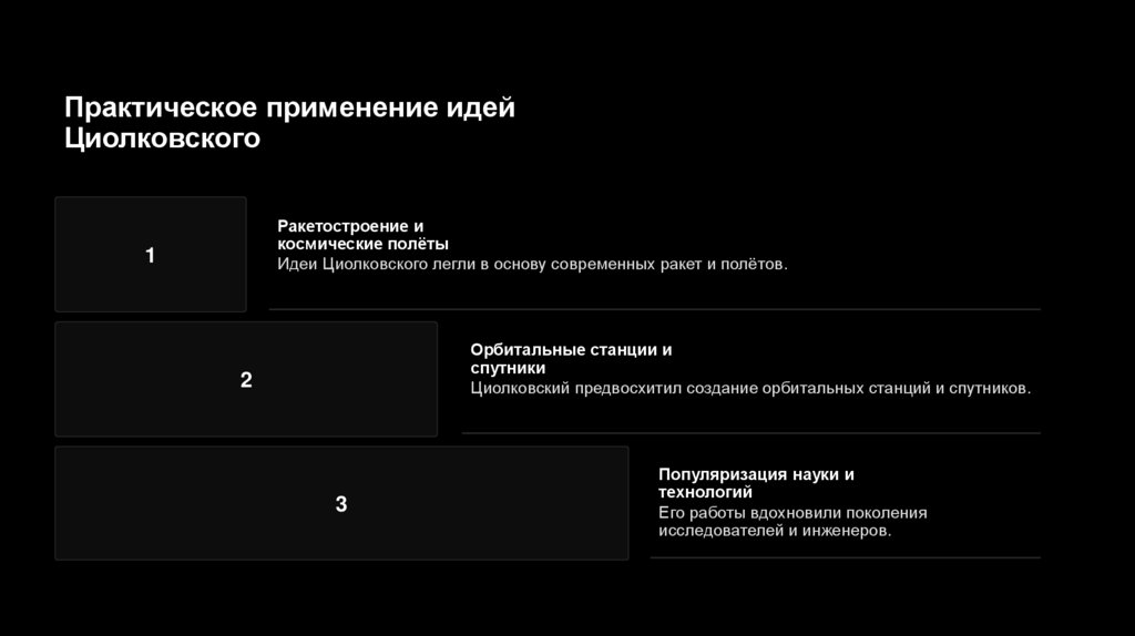 Идеи Циолковского легли в основу современных ракет и полётов.