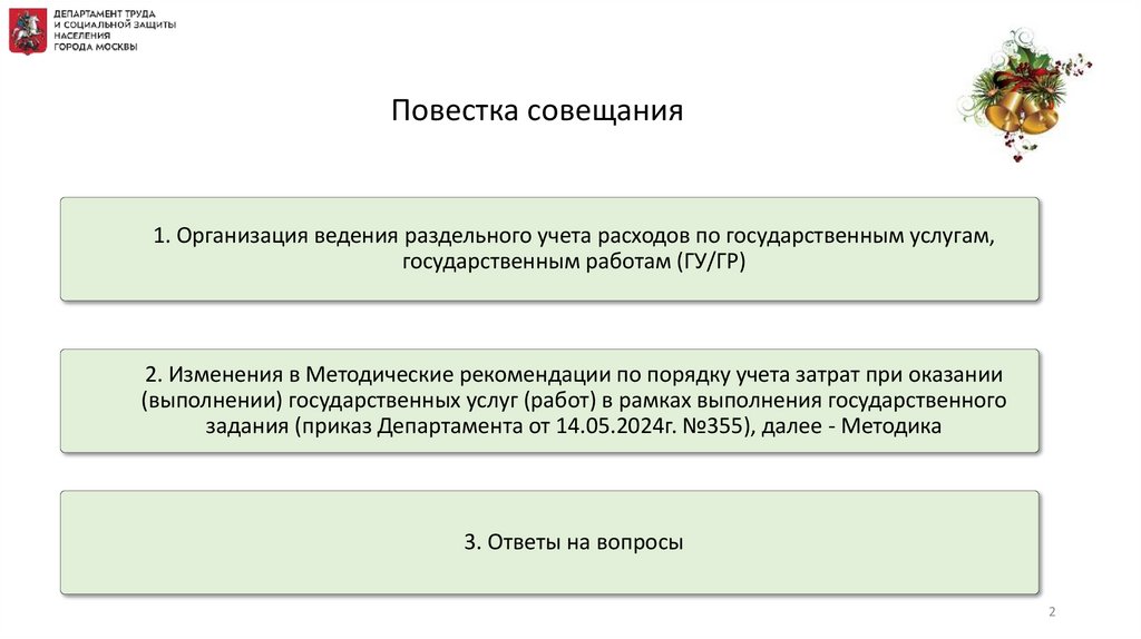Повестка совещания1. Организация ведения раздельного учета расходов по государственным услугам,