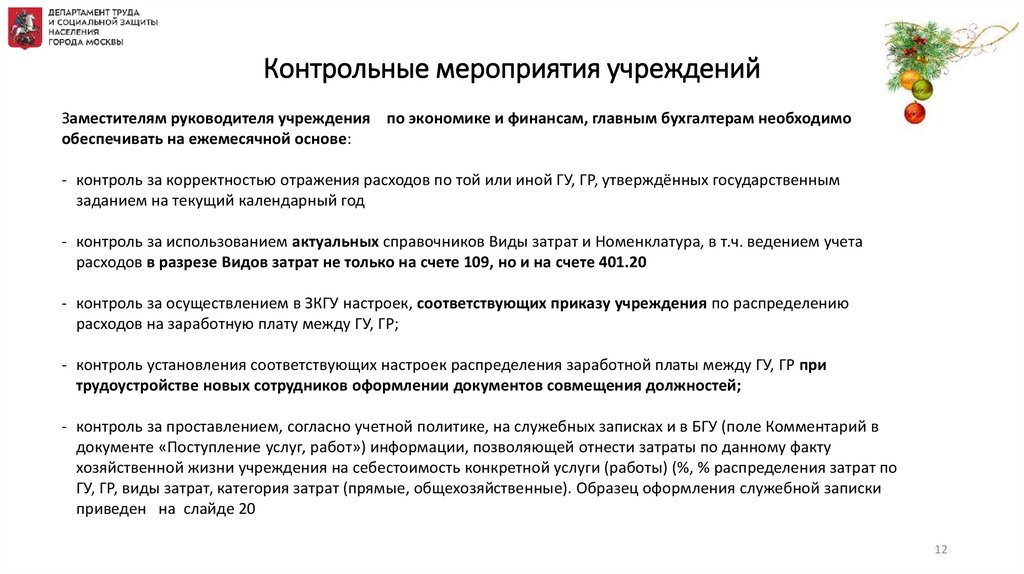 Контрольные мероприятия учрежденийЗаместителям руководителя учреждения по экономике и финансам, главным бухгалтерам необходимо