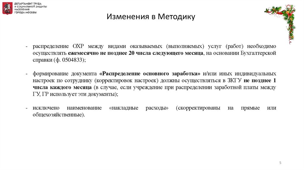 Изменения в Методику- распределение ОХР между видами оказываемых (выполняемых) услуг (работ) необходимо