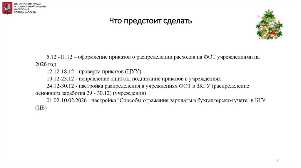 Что предстоит сделать5.12 -11.12 – оформление приказов о распределении расходов на ФОТ учреждениями на