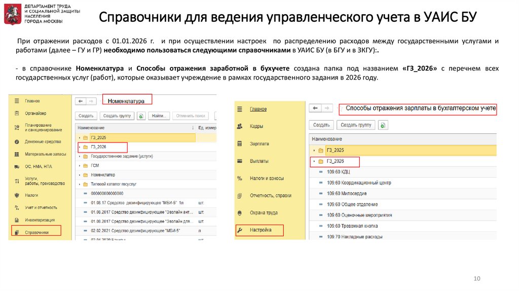 Справочники для ведения управленческого учета в УАИС БУПри отражении расходов с 01.01.2026 г. и при осуществлении настроек по распределению расходов между государственными услугами и