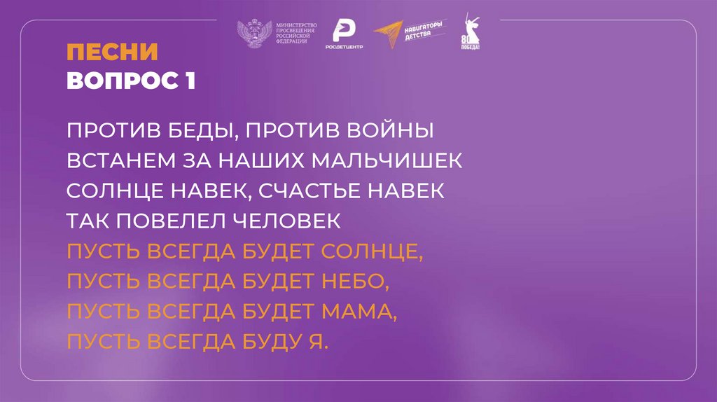 ПУСТЬ ВСЕГДА БУДЕТ СОЛНЦЕ,