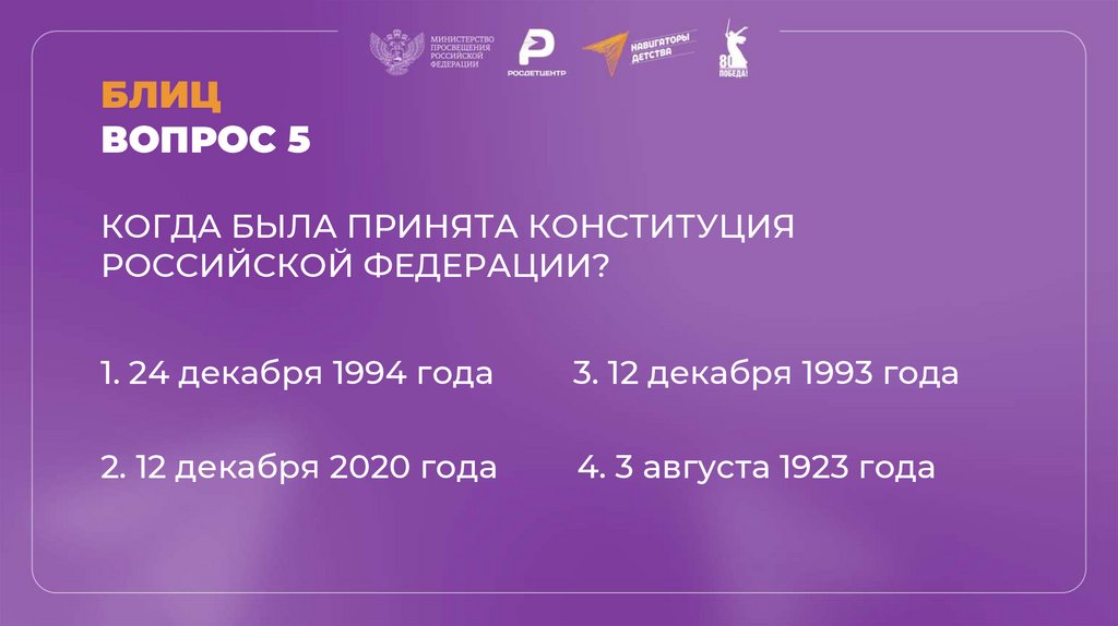 ДНЯ КОНСТИТУЦИИ В РОССИЙСКОЙ ФЕДЕРАЦИИ?