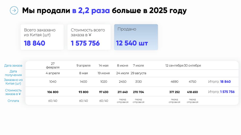 Мы продали в 2,2 раза больше в 2025 годуВсего заказано