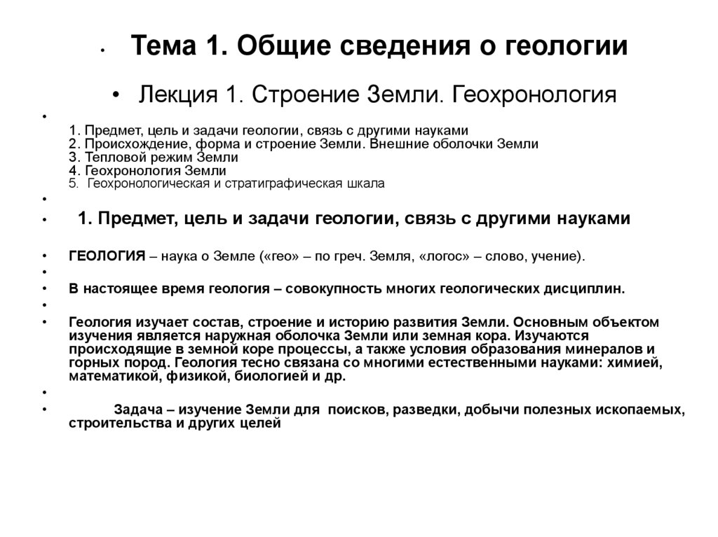 1. Предмет, цель и задачи геологии, связь с другими науками