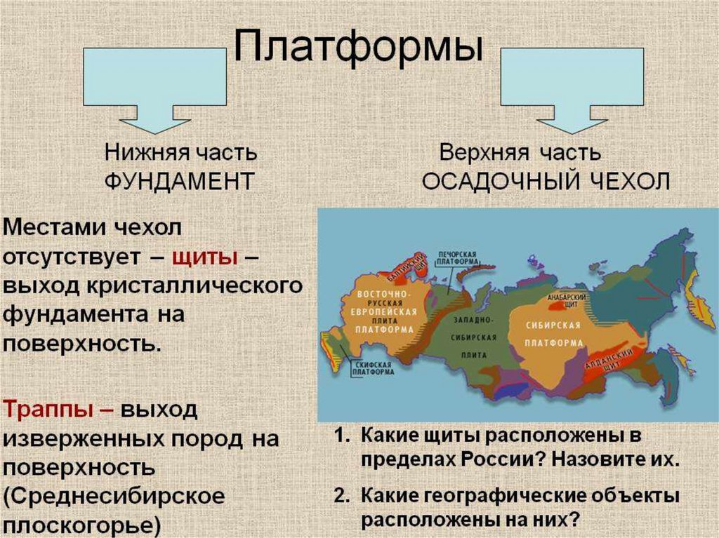 ПЛАТФОРМЫ – крупные устойчивые глыбы земной коры размером в тысячи