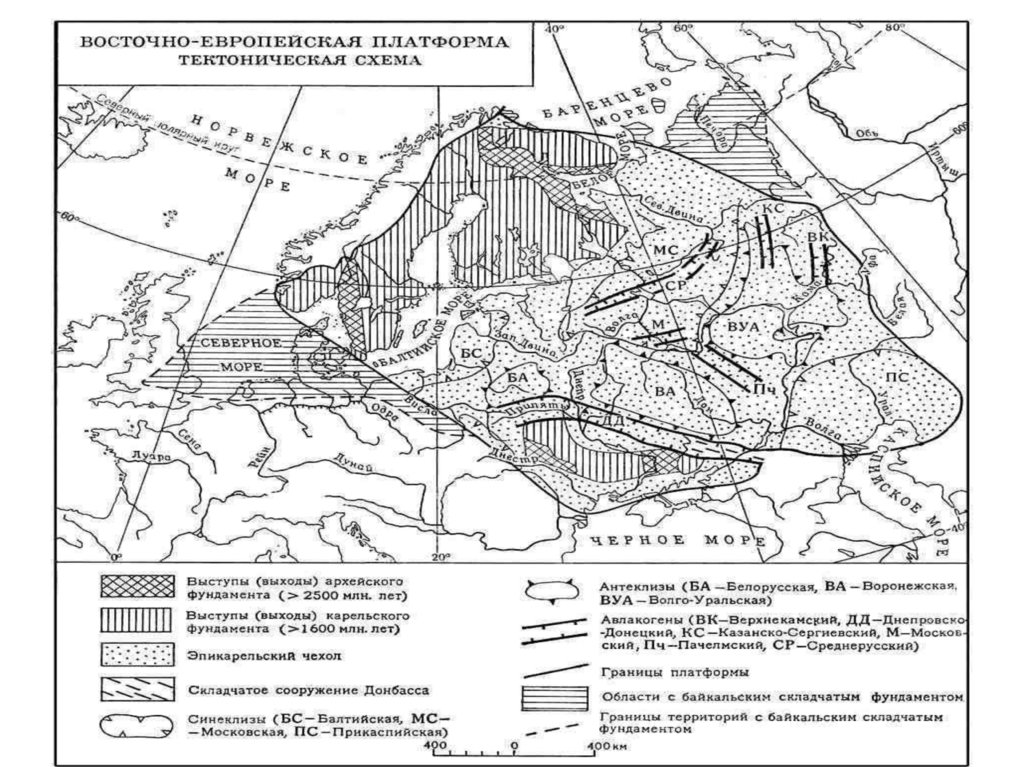– фундамент и верхний – чехол. Фундамент более древний сложен