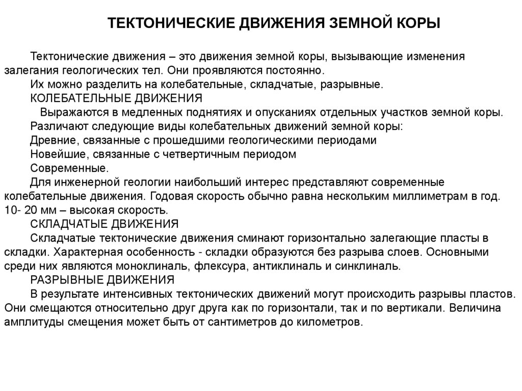 Различают следующие виды колебательных движений земной коры: