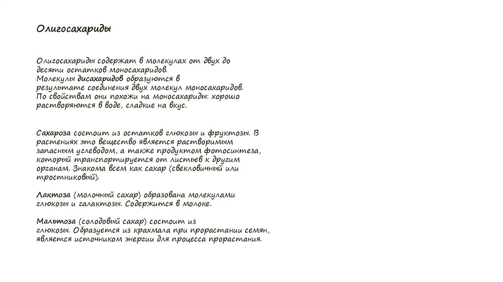 ОлигосахаридыОлигосахариды содержат в молекулах от двух до