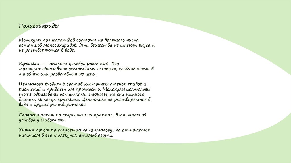 ПолисахаридыМолекулы полисахаридов состоят из большого числа