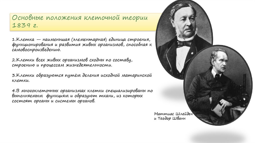 Основные положения клеточной теории1839 г.