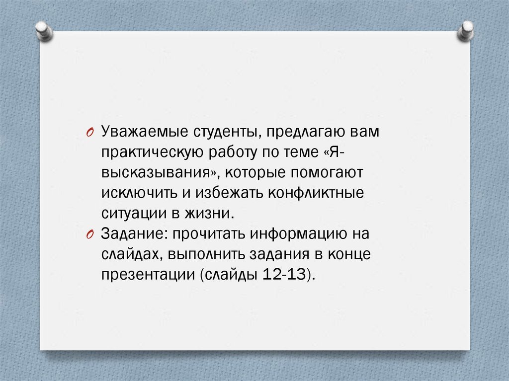 O Уважаемые студенты, предлагаю вампрактическую работу по теме «Явысказывания», которые помогают