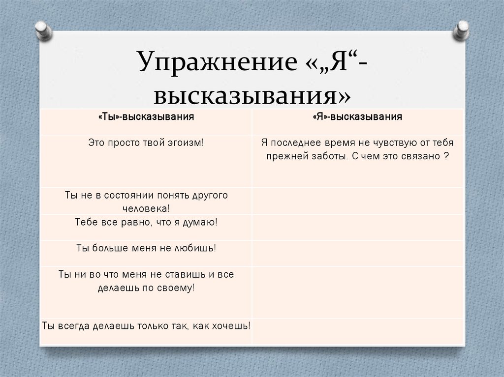 Упражнение «„Я“высказывания»«Ты»-высказывания
