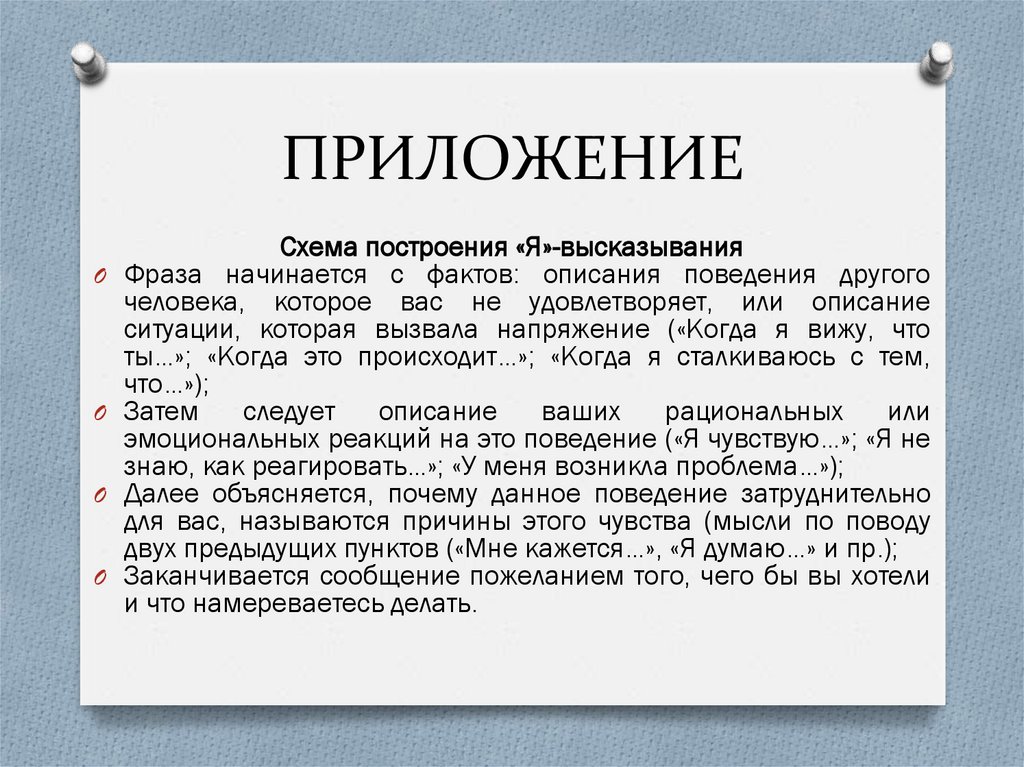 ПРИЛОЖЕНИЕСхема построения «Я»-высказывания