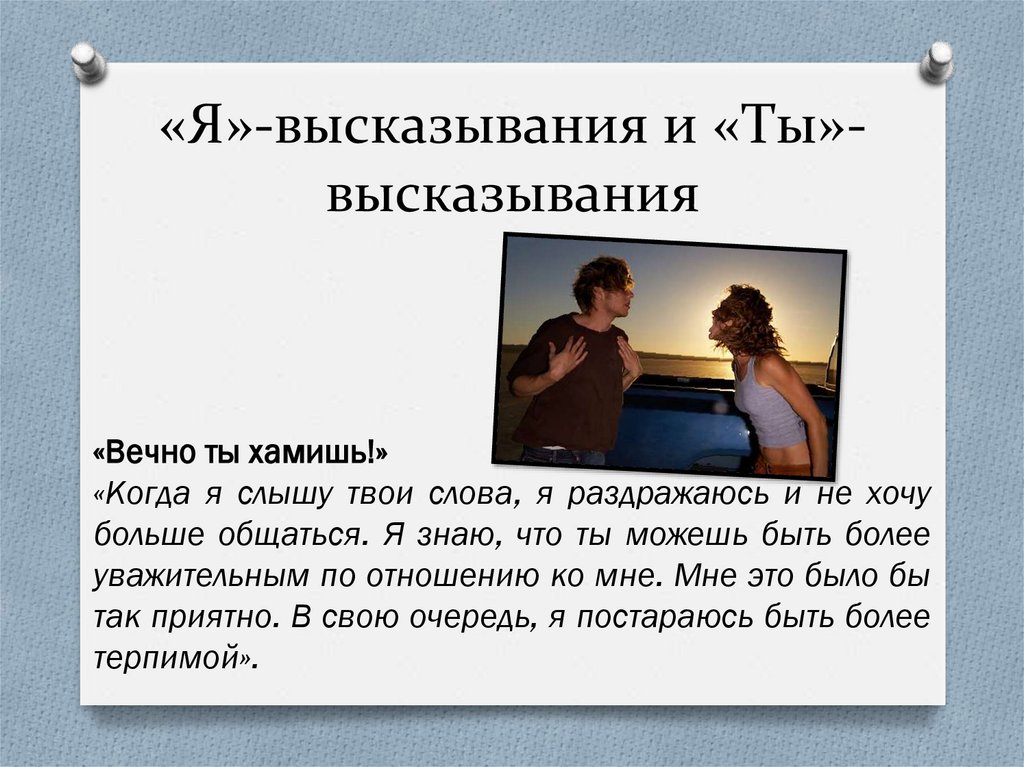 «Я»-высказывания и «Ты»высказывания«Вечно ты хамишь!»