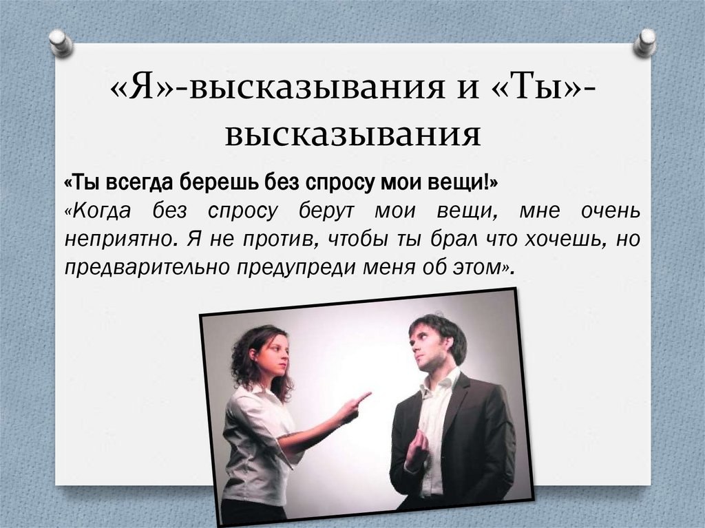 «Я»-высказывания и «Ты»высказывания«Ты всегда берешь без спросу мои вещи!»