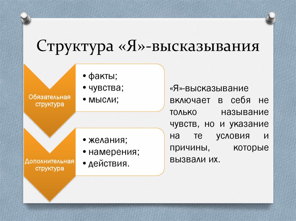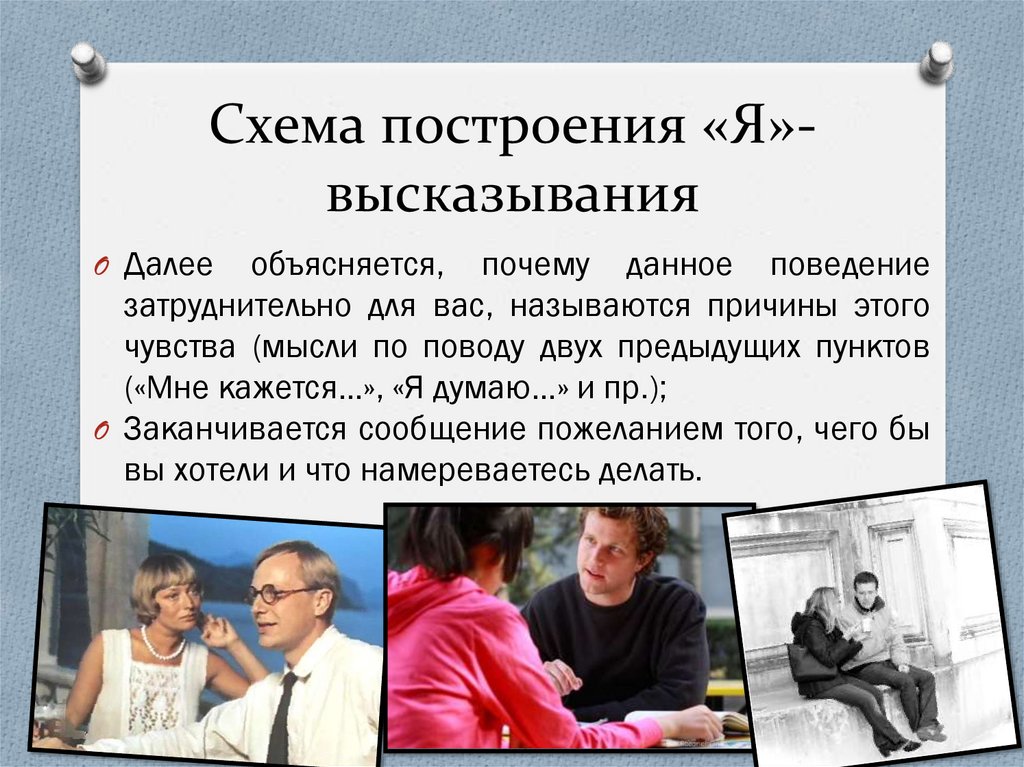 эмоциональных реакций на это поведение («Я чувствую…»; «Я не