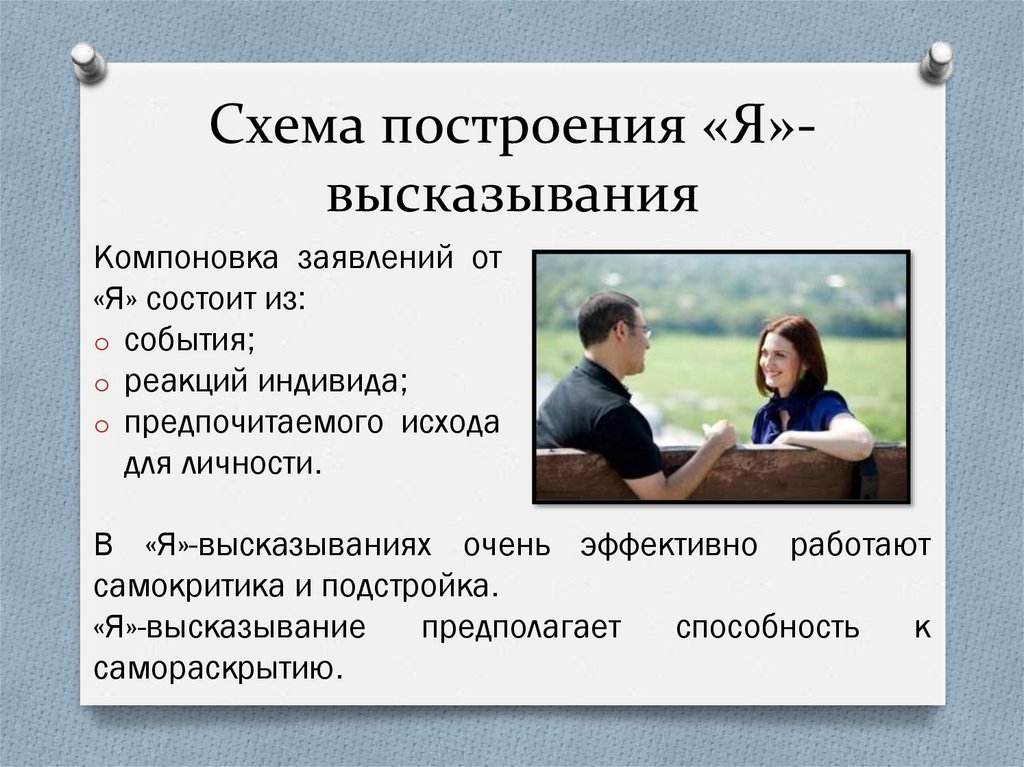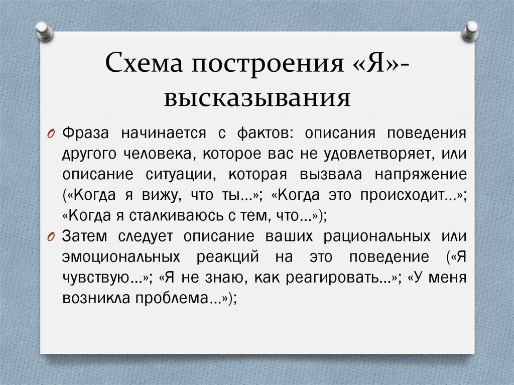 Схема построения «Я»высказыванияКомпоновка заявлений от