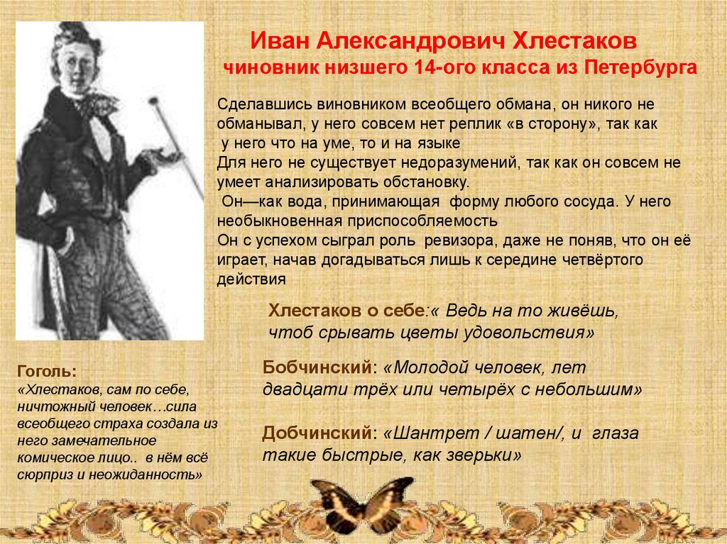 Иван Александрович Хлестаковчиновник низшего 14-ого класса из Петербурга