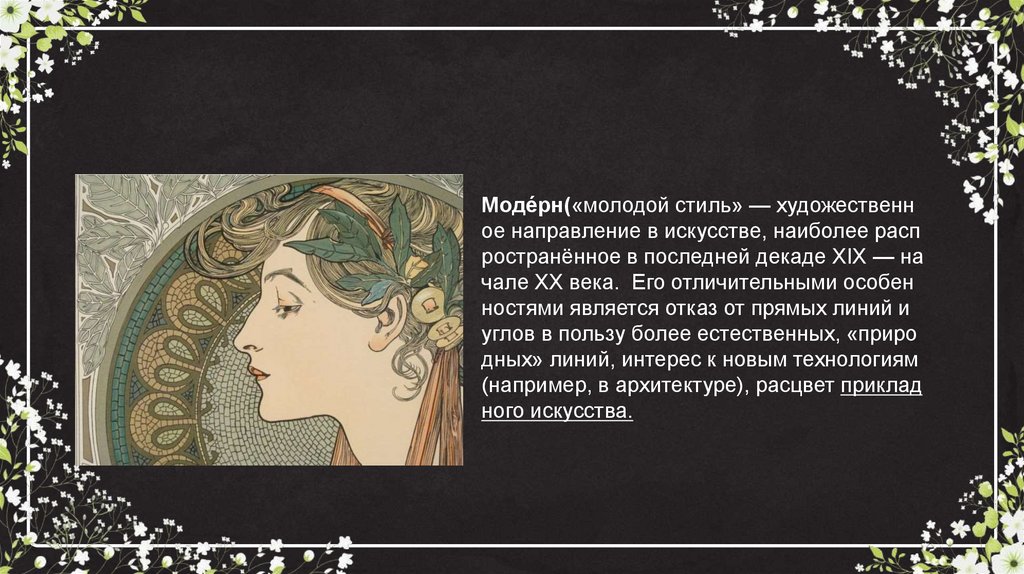 Моде́рн(«молодой стиль» — художественное направление в искусстве, наиболее расп
