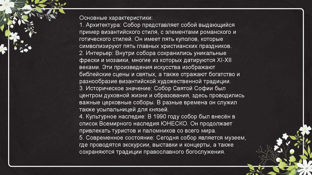 2. Архитектурный стиль: Софийский собор выполнен в