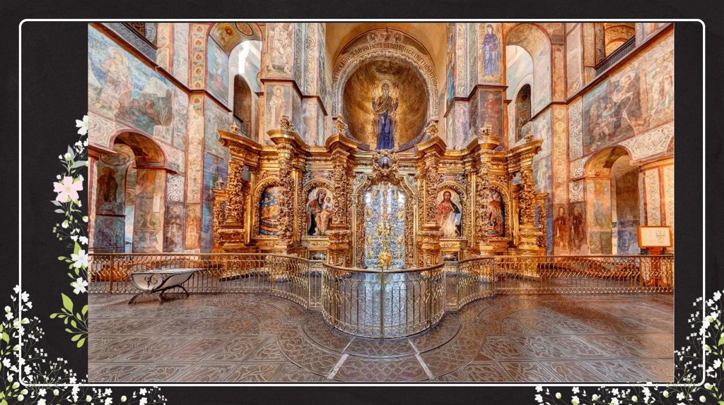 2. Интерьер: Внутреннее убранство собора украшено фресками и мозаиками,