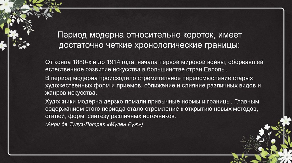 Период модерна относительно короток, имеетдостаточно четкие хронологические границы:
