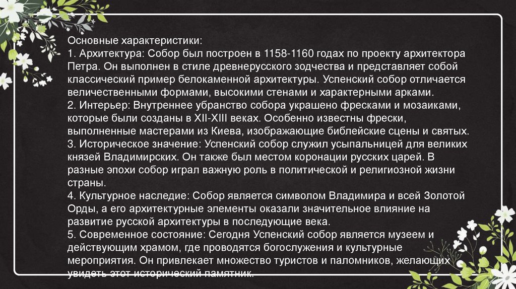 4. Культурное наследие: Собор является символом Владимира и всей Золотой