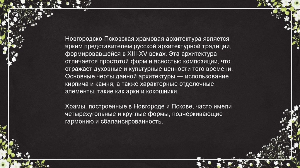 Новгородско-Псковская храмовая архитектура являетсяярким представителем русской архитектурной традиции,